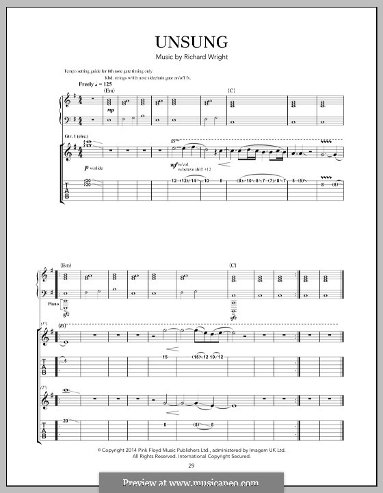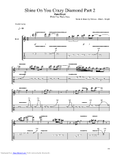 Tablature included, lyrics may be included. Purchase and print sheet music . Words and music by roger waters,. Pdf or midi free sheet music for shine on you crazy diamond by pink floyd arranged by ndipede for drum group, saxophone (tenor), guitar, . Richard wright and david gilmour.